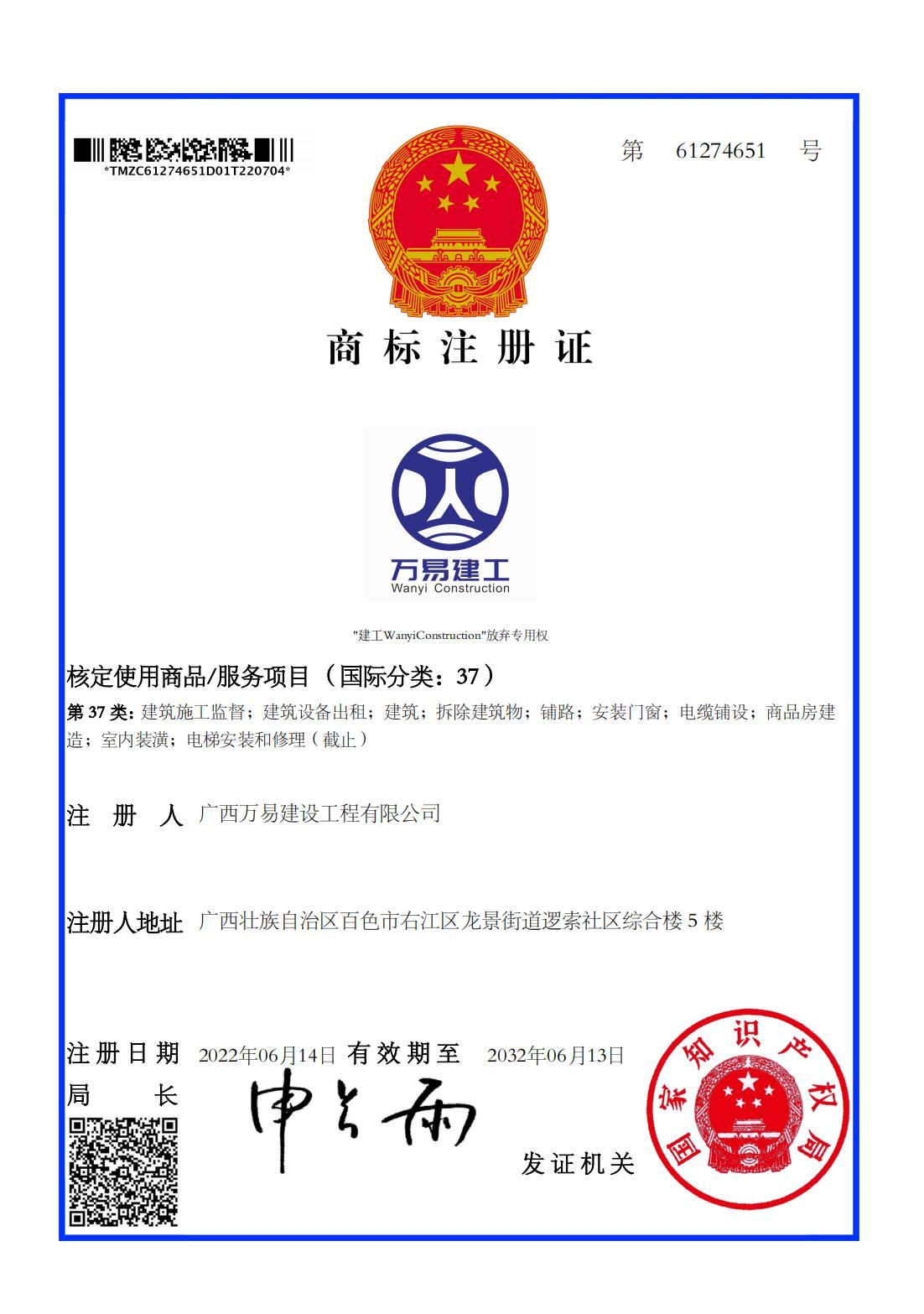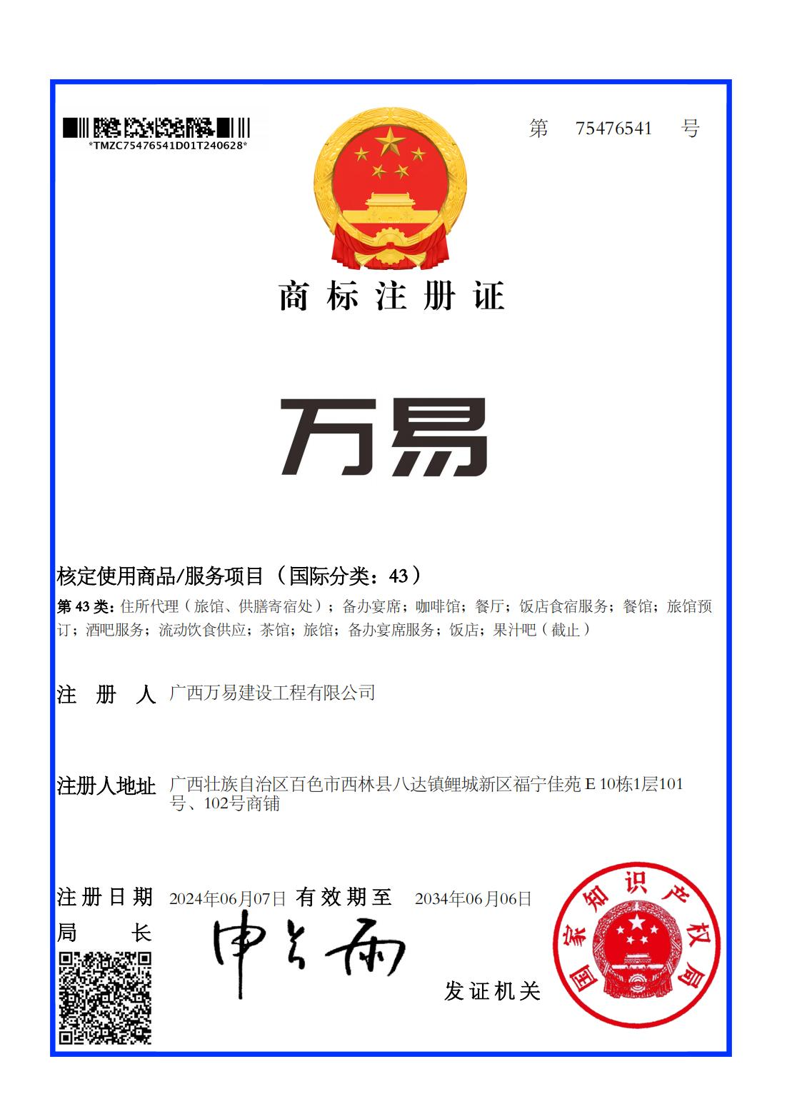 万易建工总部住所:百色市西林县八达镇鲤城新区福宁佳苑E10栋1层101号、102号商铺