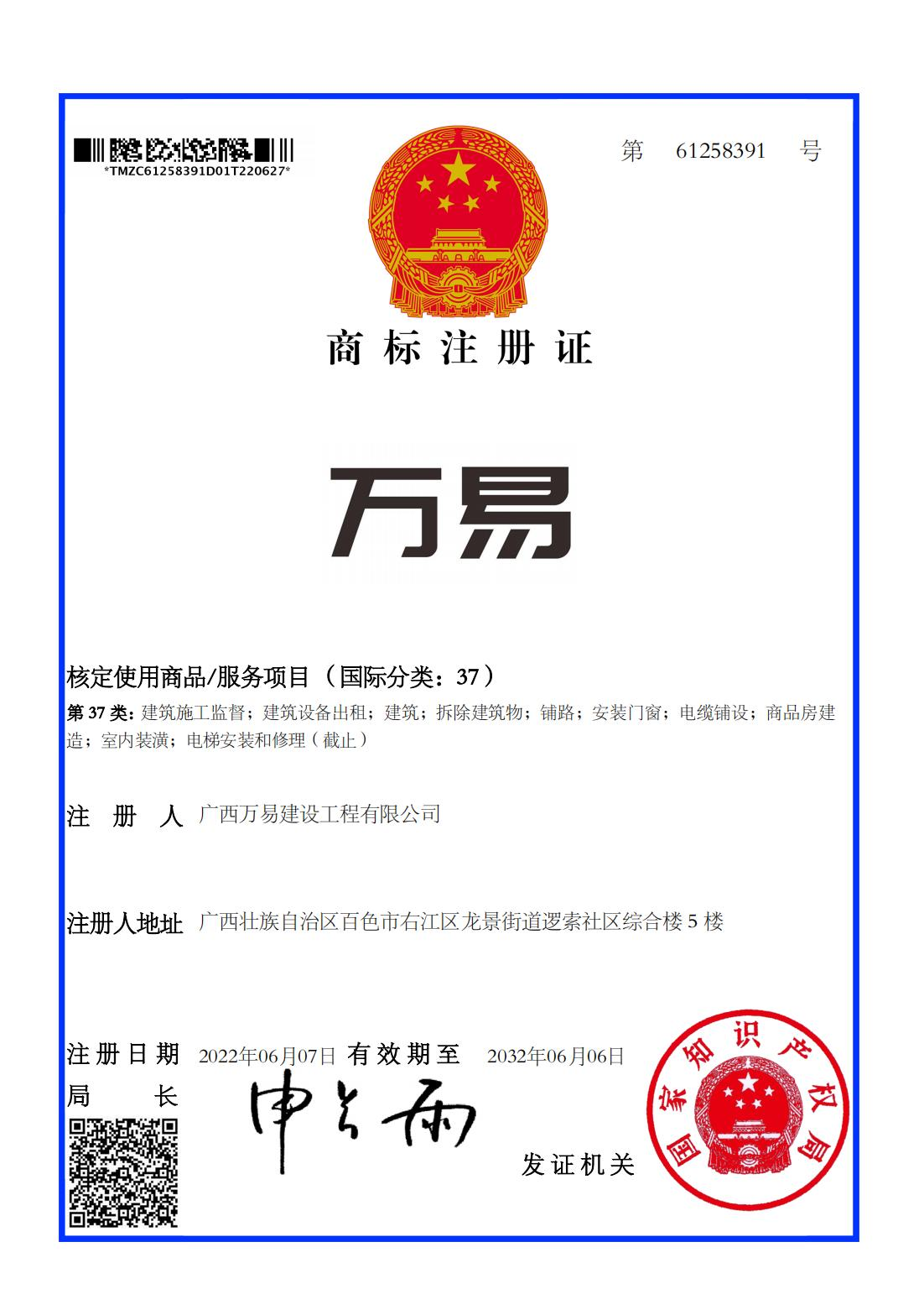 万易建工总部住所:百色市西林县八达镇鲤城新区福宁佳苑E10栋1层101号、102号商铺